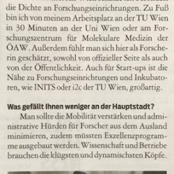 On the occasion of Vienna being named the city with the highest quality of life in the world, the Austrian newspaper Kurier interviewed Miriam regarding the quality of Vienna as workplace for both scientists and entrepreneurs. Read the interview here. [Read more]
